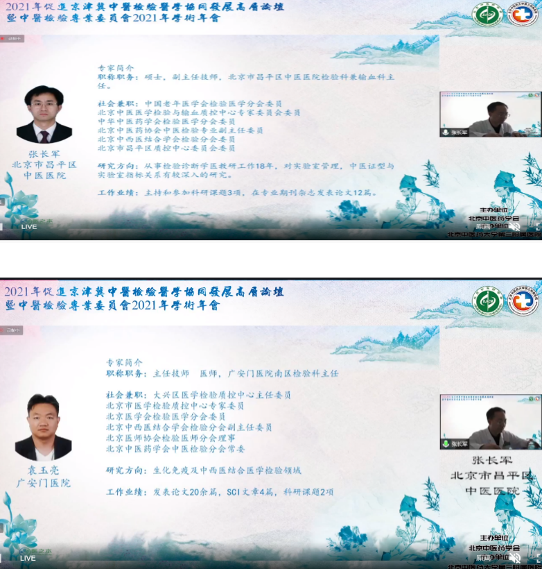 2021年11月14日,由北京中医药学会主办,北京中医药大学第三附属医院承办,河北省中医药学会协办的“2021年促进京津冀中医检验医学协同发展高层论坛暨北京中医药学会中医检验专业委员会2021年学术年会”以线上形式成功举办。