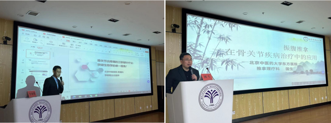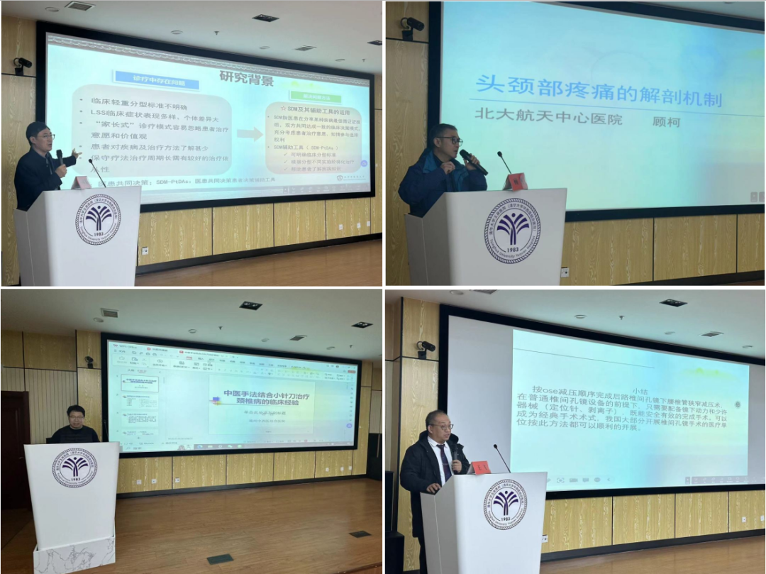学术交流环节邀请王锡友教授、崔志强教授、顾柯教授、程桯教授、赵臣来教授、王飞教授、李树明教授、国生教授分别做“腰椎管狭窄症中西医结合医患共同决策系统的构建”“老年重症椎管狭窄的显微外科治疗”“头颈部疼痛的筋膜募集点解剖机制”“经皮穴位电刺激在全膝关节置换围手术期的应用”“巨刺运动疗法在常见疼痛性疾病中的应用体会”“开放式单孔脊柱内镜减压顺序完成后路椎间孔镜下腰椎管狭窄减压术”“膝关节炎疼痛治疗的新视角”“振腹推拿在骨关节疾病治疗中的应用”主题汇报,促进同行学习交流及科研水平提升,进一步推动中医疼痛学科快速发展。