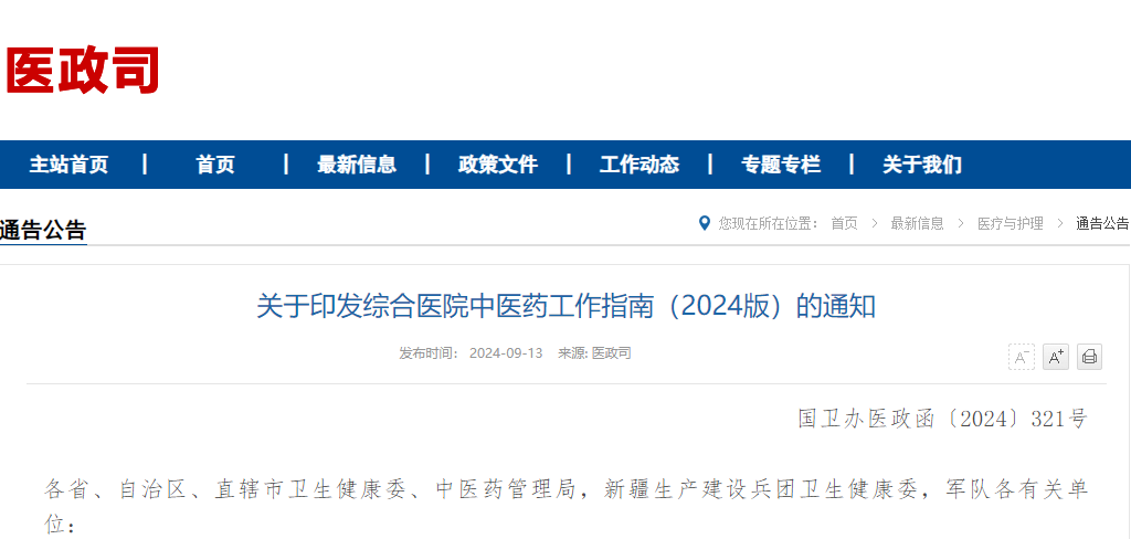 特别关注丨综合医院中医药工作指南(2024版)(全文和解读)