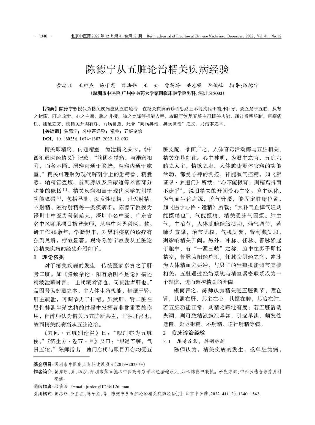 [3]黄忠旺,王胜杰,陈子龙,等.陈德宁从五脏论治精关疾病经验[J].北京中医药,2022,41(12):1340-1342.