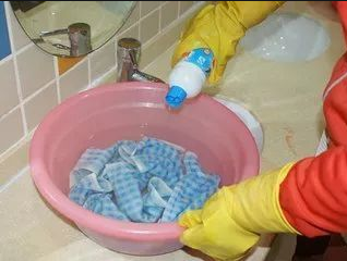 1. 处理感染者衣物前,戴上结实的手套,防止洗涤过程破损。