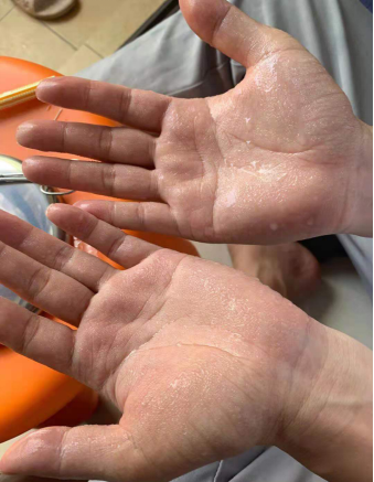 中医认为内治此病宜采用的方法是清热燥湿和中,治疗上可考虑甘露消毒饮、藿朴夏苓汤、三仁汤化裁治疗;若除手汗外,患者痰湿之象明显,也可选用温胆类方加减治疗。