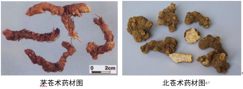 在《中华人民共和国药典》(2015版)中,记载其来源为菊科植物茅苍术Atractylodes lancea (Thunb.)DC.或北苍术Atractylodes chinensis (DC.) Koidz.的干燥根茎。在春、秋二季采挖,除去泥沙,晒干,撞去须根。