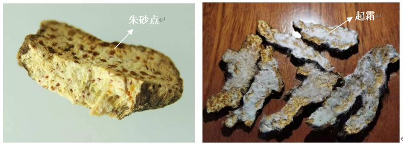 另外有一种关苍术产自东北地区,其断面纤维性强,油室(朱砂点)不明显,与药典收载品种有别,多在产地自产自销,全国大部分地区不用此品,应在使用中加以注意。