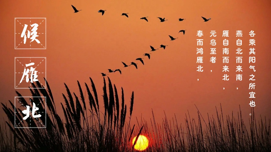 第二个五日来临时,北方的日照时间早已延长,阳气升发,植物昆虫都生长起来。大雁为了更好的繁育后代,向北方迁徙而来,寻找食物养育雏雁。