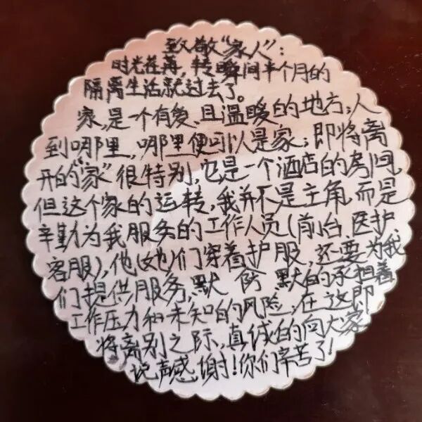 如今,信件似乎已经淡出了人们的视线,已经很少有人用“手写信”这种弥足珍贵的方式来传达情意了。但对于医学集中观察点里的群众而言,或许只有亲手书写才能表达出自己的满腔感激,是他们对医务工作者工作肯定最好的告白。