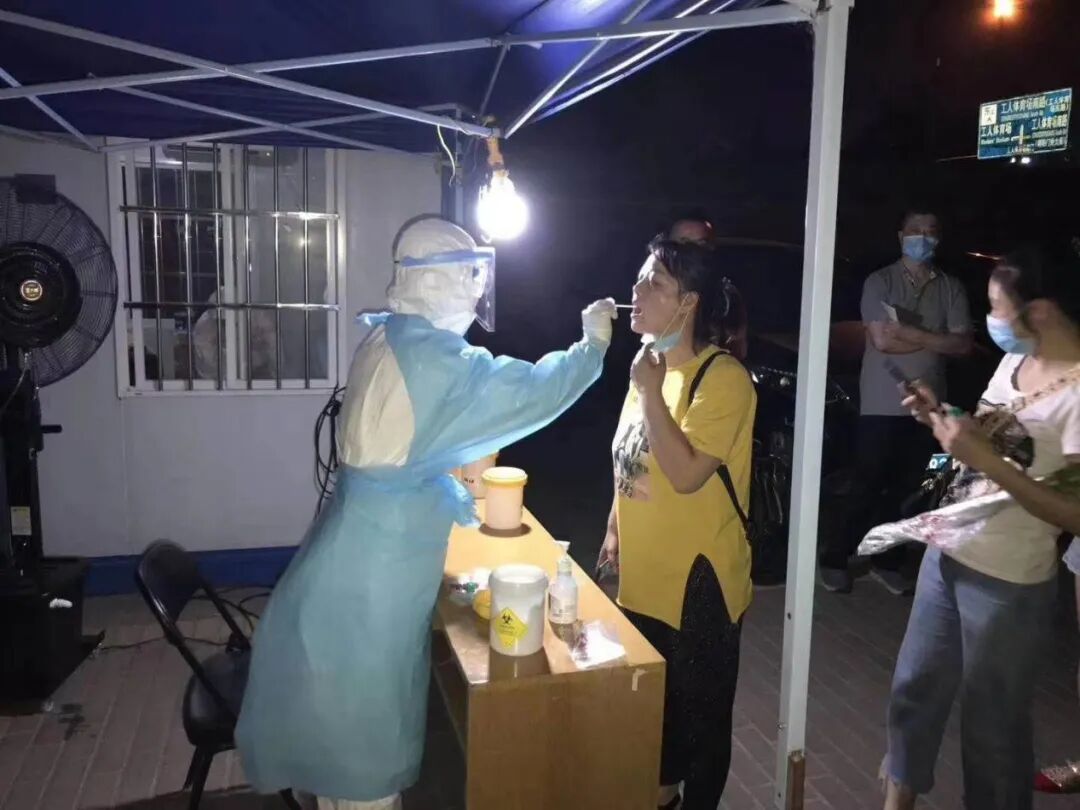 与采样对象面对面的医护人员,即便是全副武装,稍有不慎,也随时可能被感染。每采样一个人,医护人员就可能与病毒“面对面”一次,17日凌晨1点完成了密接人员采样58人次;农贸市场人员采样166人次。圆满完成了此项工作任务,这种舍小家为大家,以无私奉献的精神谱写了一曲曲社区卫生服务壮丽篇章。